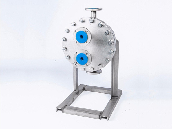 食品級(jí)板殼換熱器是以板管作為傳熱元件的換熱器,又稱薄片換熱器。它主要由板管束和殼體兩部分組成。將冷壓成形的成對(duì)板條的接觸處嚴(yán)密地焊接在一起,構(gòu)成一個(gè)包含多個(gè)扁平流道的板管。許多個(gè)寬度不等的板管按一定次序排列。為保持板管之間的間距,在相鄰板管的兩端鑲進(jìn)金屬條,并與板管焊在一起。板管兩端部便形成管板,從而使許多板管牢固地連接在一起構(gòu)成板管束。板管束的端面呈現(xiàn)若干扁平的流道板管束裝配在殼體內(nèi),它與殼體間靠滑動(dòng)密封消除縱向膨脹差。設(shè)備截面一般為圓形,也有矩形、六邊形等。